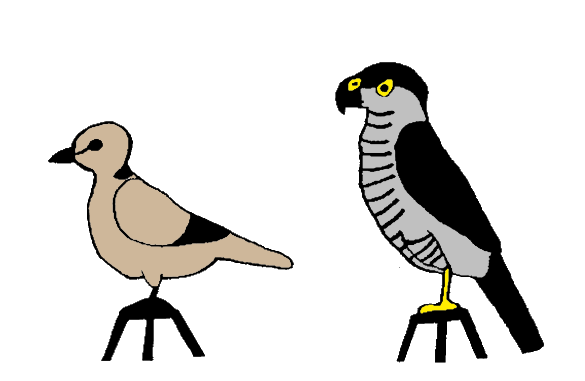 Collared dove control and sparrowhawk stimulus. Drawing: Ernő Vincze